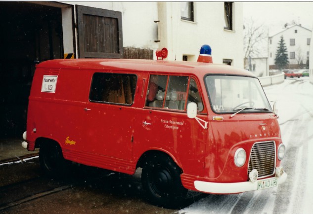 Das erste Fahrzeug der Feuerwehr Eitensheim war dieses TSF auf Ford Transit Fahrgestell. Es war von 1962 bis 1993 im Dienst, und leistete somit ganze 31 Jahre treuen Dienst bei der Feuerwehr Eitensheim.