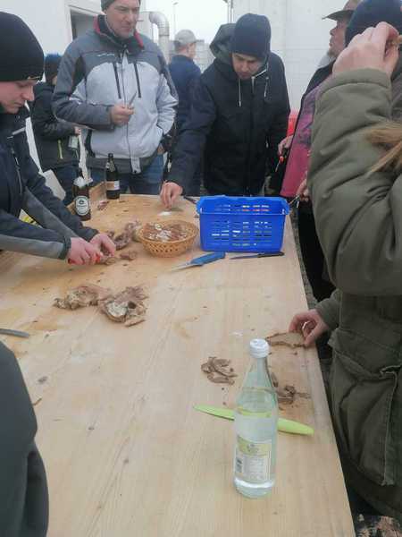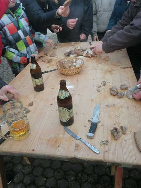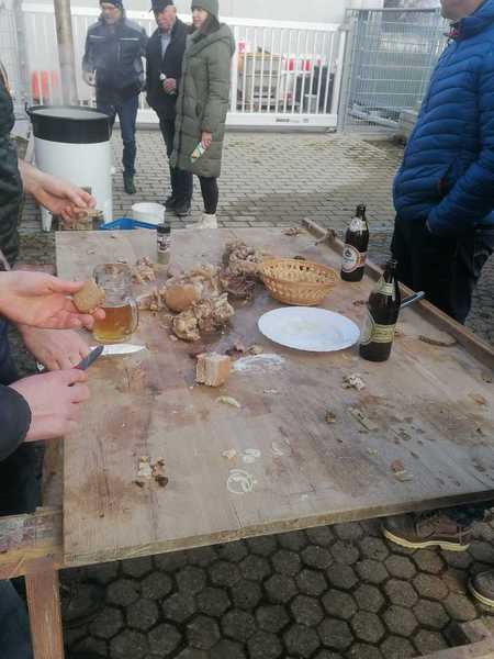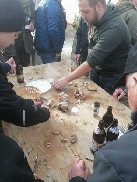 Durch Herbert Hammerer und seinen Vater konnten sich unsere Kammeraden das Kesselfleisch wieder schmecken lassen. Das übrig gebliebene Fleisch wurde im anschluss direkt zu Würsten verarbeitet.
