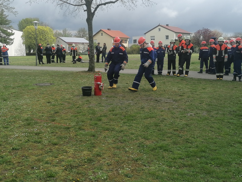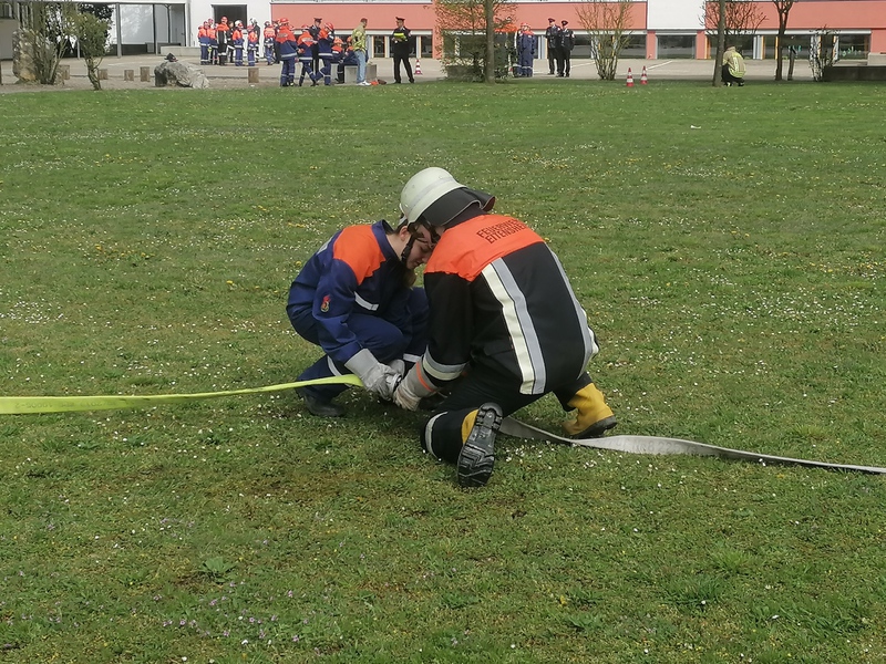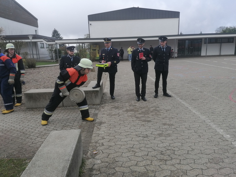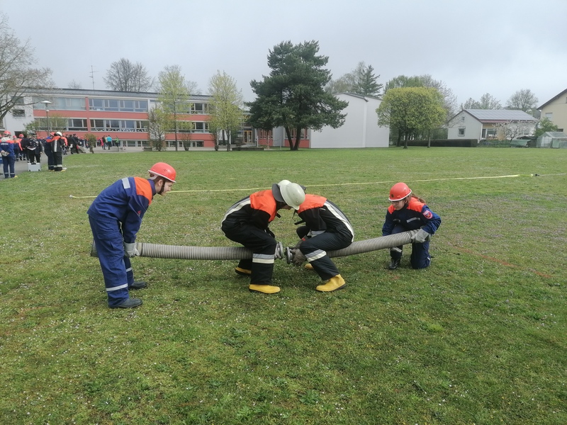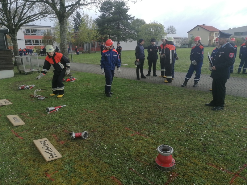 Am 29.04.2023 absolvierten 8 Jugendliche die bayerische Jugendleistungsspange in Stammham. Dabei galt es eine 90m lange C-Leitung zusammen zu kuppeln, diverse Knoten zu binden, Schläuche aus zu rollen und Leinen zu werfen.