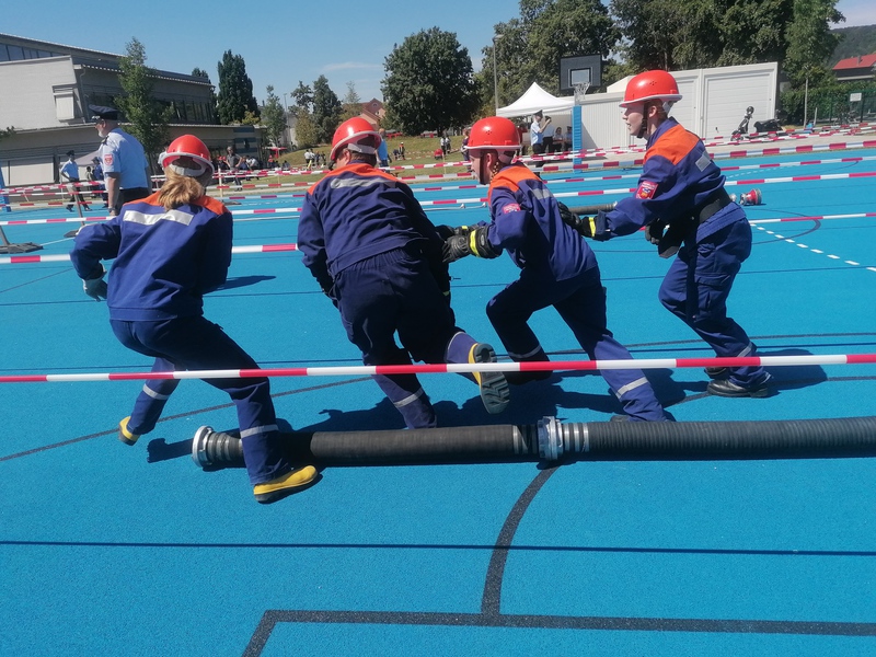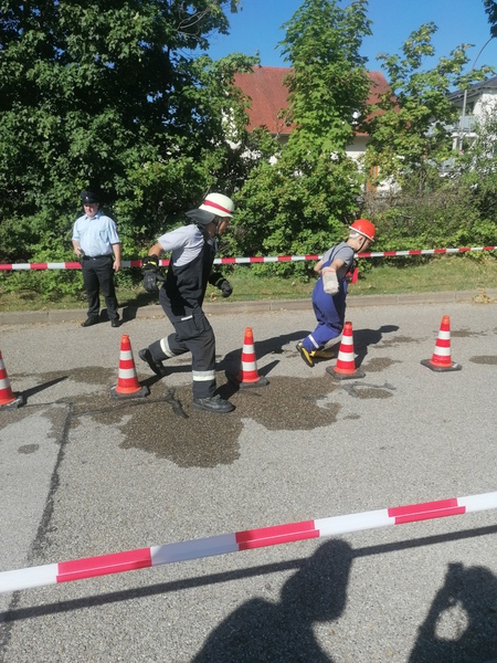 Am 22.07.2023 nahmen wir mit drei Gruppen am 30. Kreisjugendfeuerwehrtag in Beilngries teil. Bei dem Wettbewerb traten über 300 Jugendliche in 77 Teams aus dem ganzen Landkreis Eichstätt gegeneinander an. Neben Schlauchzielwerfen und Theoriefragen wann welches Löschmittel angewandt wird, galt es einen Hindernissparcour mit Leinenbeutel werfen, Schläuche auffrollen und Saugschlauchkuppeln zu meistern. Zudem musste eine Verkehrsabsicherung mit Schlauchbrücken aufgebaut werden. Zu letzt galt es noch einen Löschaufbau und einen Wassertransport zu bewältigen.