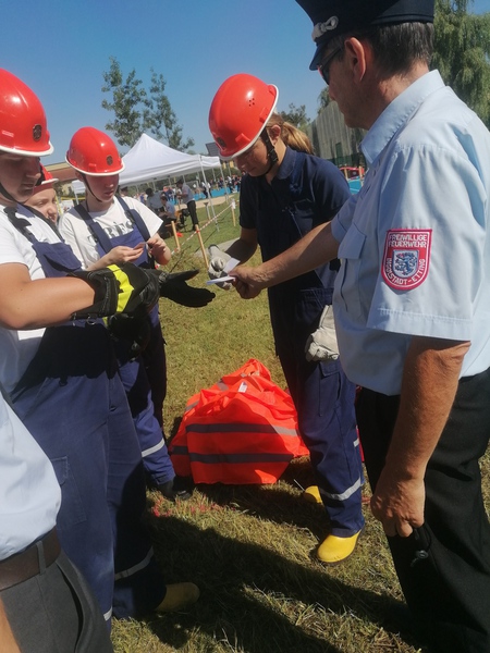 In der Prüfung galt es einen standart Aufbau für einen Verkehrsunfall aufzubauen sowie die Kenntniss der einzelnen Gerätschaften bei den sogenannten Truppaufgaben unter Beweis zu stellen. Je nach Stufe mussten verschiedene Zusatzaufgaben wie Fahrzeugkunde, das Erkennen von Gefahrensymbolen oder Fragebögen beantwortet werden.