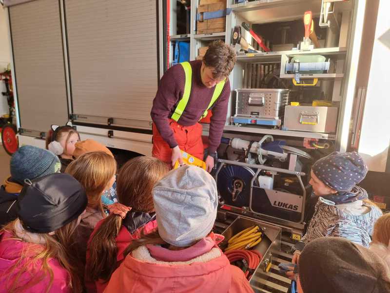 Am 19.01. besuchten uns die Gruppenstundenkinder der Pfarrjugend, um die Feuerwehr zu besichtigen. Die 28 Kinder teilten wir in zwei Gruppen auf und zeigten ihnen das Feuerwehrgerätehaus und die Fahrzeuge. Als Highlit am Ende durfte jeder noch eine runde im Hilfeleistungslöschgruppenfahrzeug (HLF) mitfahren.