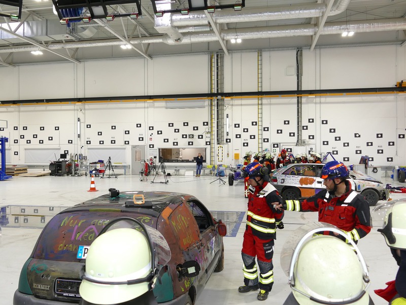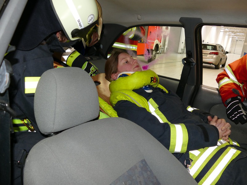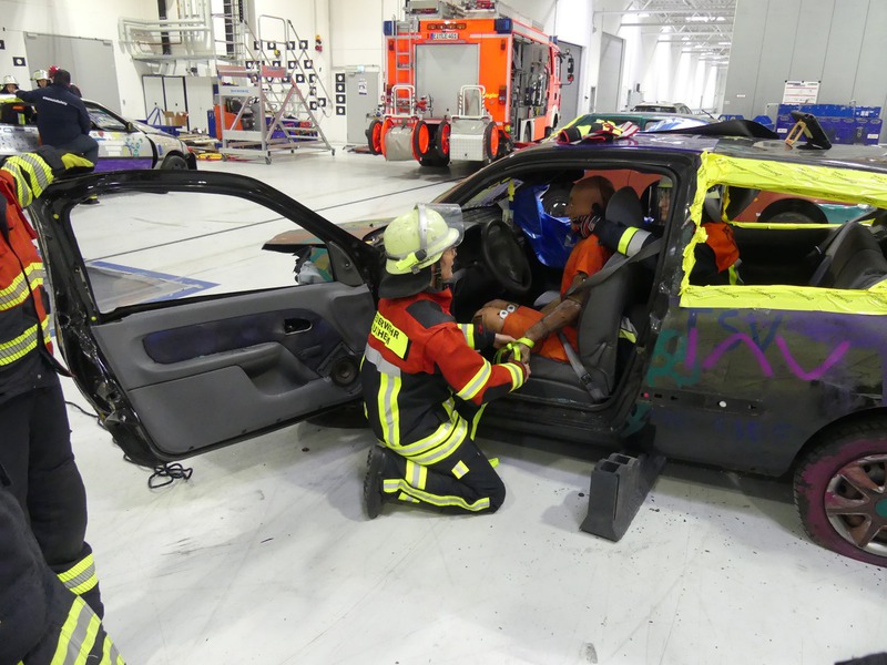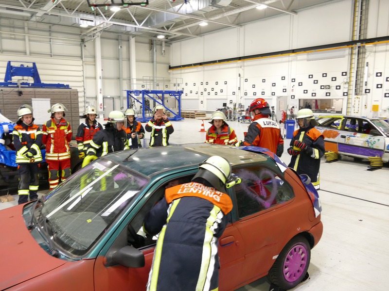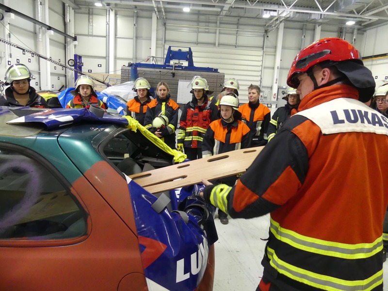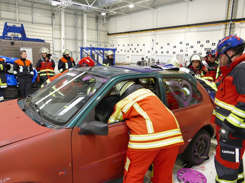 Nach dem theoretischen Part, bei dem es um Fahrzeugsicherheit und Fahrzeugaufbau ging, erhielten sie die Möglichkeit, an drei gecrashten Fahrzeugen eine Unfallrettung durchzuführen.