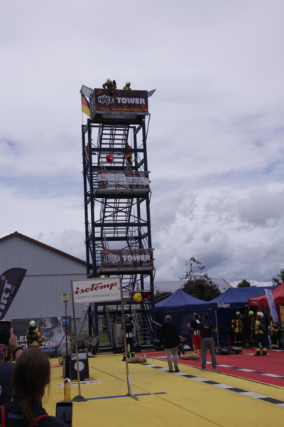 Der 12 m hohe Haixtower war zu erklimmen, oben angekommen zog man ein 19 kg schweres Schlauchpaket an einer Leine bestigt den Turm hinauf. Beim Herunterlaufen des Turms war darauf zu achten, dass jede Stufe und der Handlauf mit beiden Händen benutzt wurden.