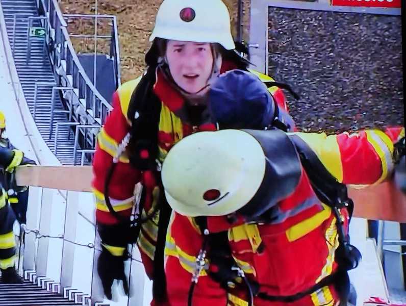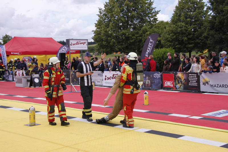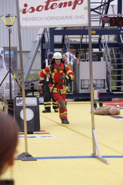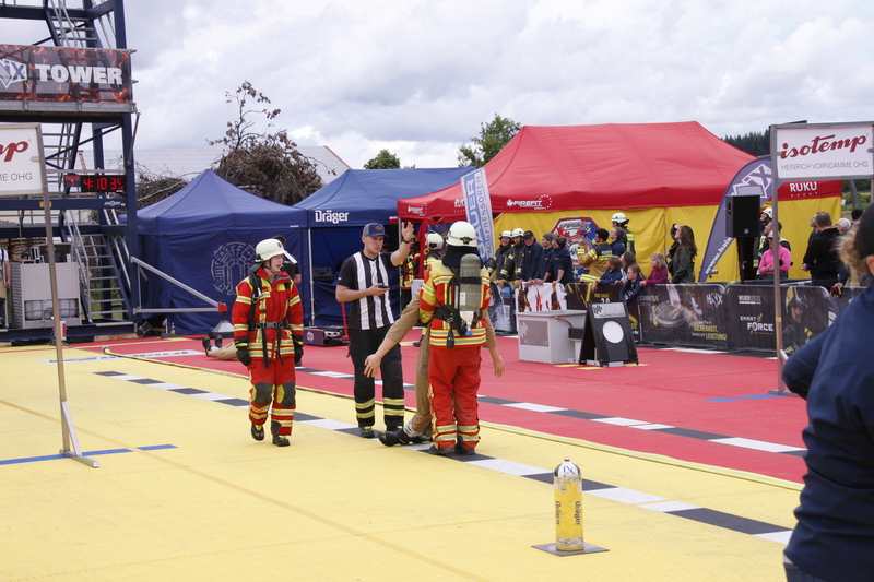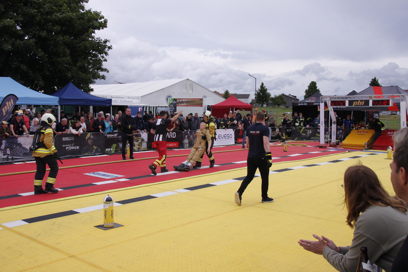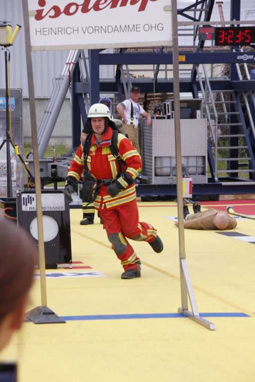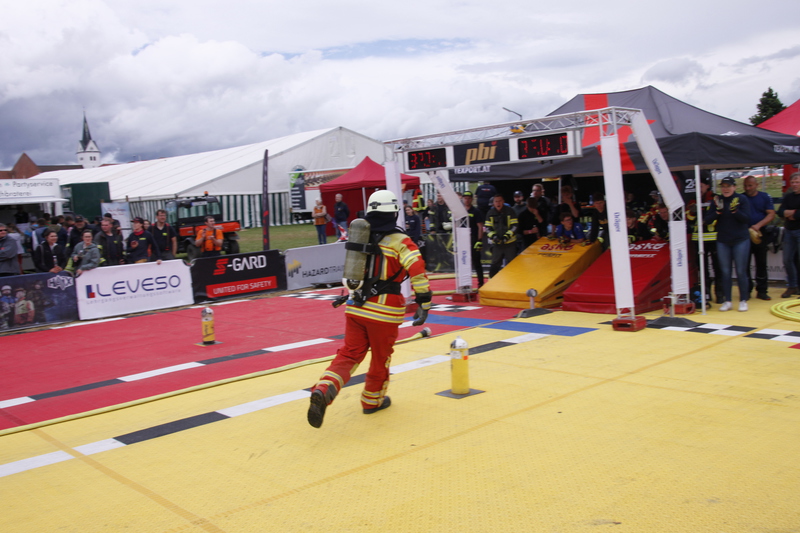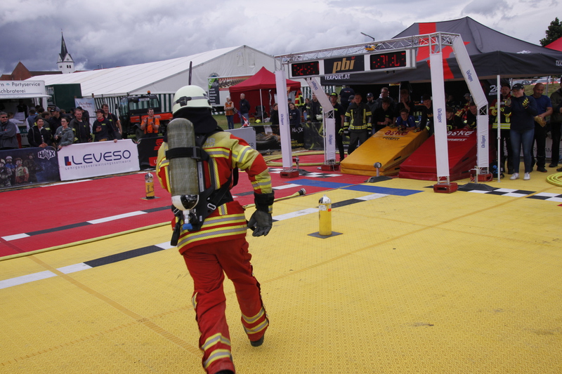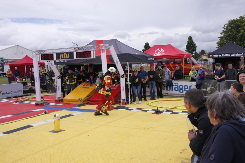 Das ganze natürlich nicht in leichter sportlicher Bekleidung, sondern in voller Feuerwehrschutzkleidung mit einem Atemschutzgerät auf dem Rücken.