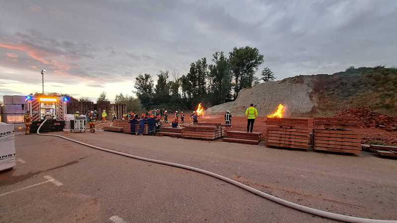 Die Übung wurde mit dem Stichwort B4 (Brand Industrie) alarmiert. Angenommen wurde ein Brand des Ofens, der zu einem Vollbrand des Ofenhauses und einer starken Verrauchung der angrenzenden Produktionshalle führte. Insgesamt wurden fünf Mitarbeiter in der Halle vermisst, was die Dringlichkeit und Komplexität der Übung erhöhte.