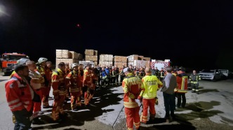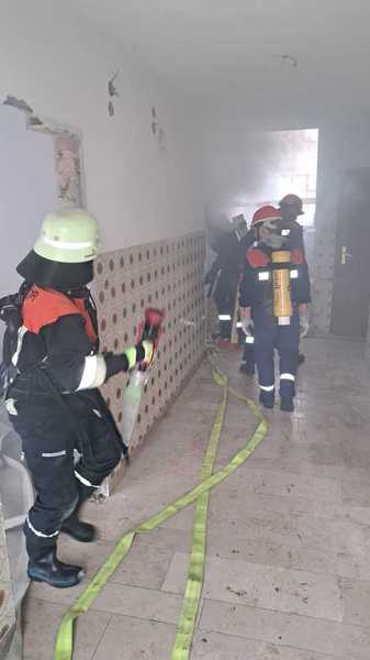 * 10:10 Uhr - Brand Explosion: In einem simulierten Szenario kam es zu einer Gasexplosion, die ein Wohnhaus teilweise zerstörte. Im Erdgeschoss wurden zwei Personen vermisst. Im Garten befanden sich mehrere verletzte und unter Schock stehende Personen. Das Feuer hatte bereits auf den benachbarten leeren Stall übergegriffen, in dem sich ebenfalls eine verletzte Person befand.