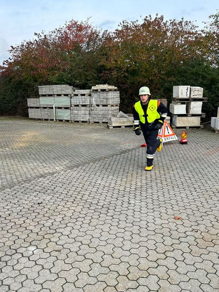 * 13:15 Uhr - ABC 2 Auslaufende unbekannte Flüssigkeiten: Dieses Szenario baut auf den vorherigen Unterricht auf. Auf dem Betriebsgelände der Firma Brandl ist es zu einem Gefahrgut Unfall gekommen. Aus einem defekten IBC Behälter tritt eine unbekannte Flüssigkeit aus. Ein Mann, der den Behälter schließen wollte, liegt bewusstlos daneben. Ein weiterer Mitarbeiter, der ihm zu Hilfe eilen wollte, liegt ebefalls bewusstlos am Boden. Ein besorgter Kollege stand aufgeregt daneben, hatte den Notruf verständigt und wollte seinen Kameraden helfen.