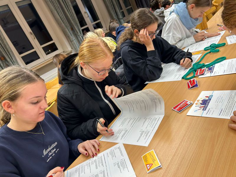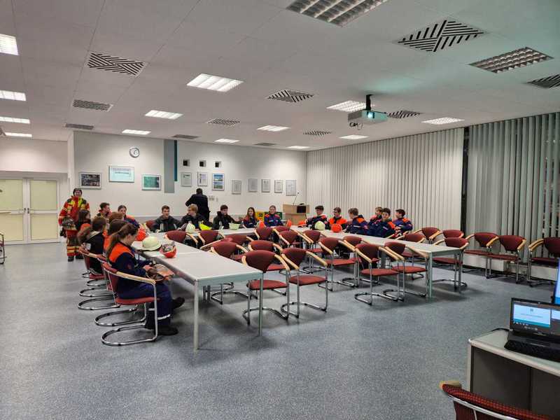 Um 13:00 Uhr versammelten sich die Jugendlichen im Schulungsraum zu einem kurzen Dienstunterricht. Das Thema des Unterrichts war Gefahrgut, wobei wichtige Sicherheitsmaßnahmen und Verhaltensregeln besprochen wurden.