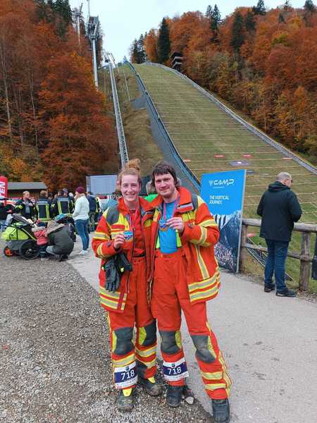 Die beiden Eitensheimer Feuerwehrleute Anna Glasel und Simon Edlich erreichten die Spitze der Schanze in 22,57 Minuten und landeten damit im guten Mittelfeld in der Wertung ohne Maske auf Platz 47.