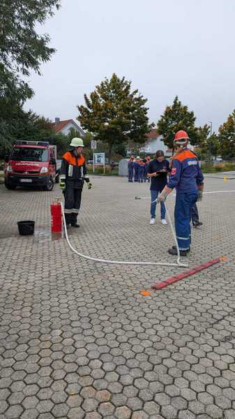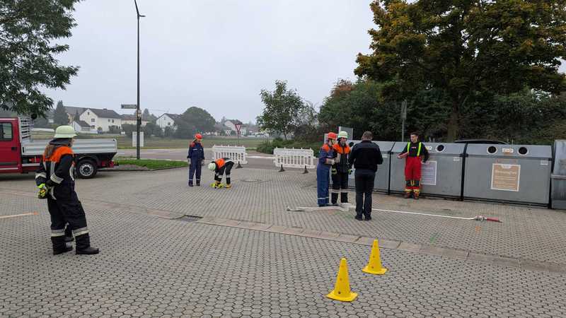 Dieses Jahr galt es einen Wassertransport, verschiedene Knoten, Theoriefragen zur Gefahrenmatrix und eine Verkehrsabsicherung zu meistern.