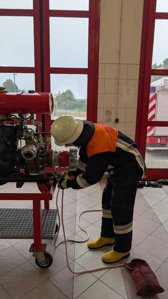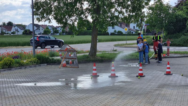 Am 23.05.25 besuchte die Gruppenstunde der Pfarrjugend die örtliche Feuerwehr. Zunächst führten wir die Kindern durch unser Feuerwehrgerätehaus. Anschließend teilten wir sie in drei Gruppen ein. Die erste Gruppe durfte mithilfe der Wärmebildkamera, zwei versteckte Personen in der Schlauchwaschanlage suchen. Die zweite Gruppe erhielt von Karin Trini eine ausführliche Erklärung unseres Hilfeleistungslöschgruppenfahrzeugs. Die dritte Gruppe konnte ihr Geschick mit der Kübelspritze unter Beweis stellen, indem sie Tischtennisbälle von Pylonen spritze.