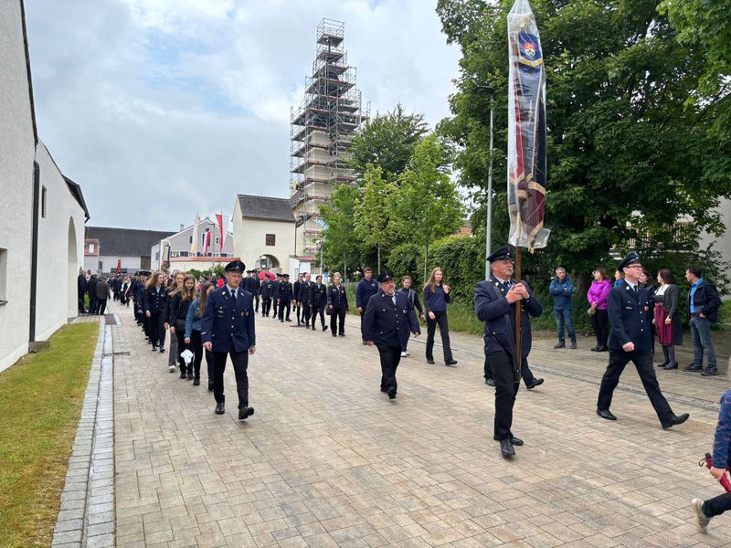 Vom 22.05. - 25.05. feierte die Freiwillige Feuerwehr Wolkertshofen ihr 150-jähriges Bestehen. Am Festsonntag war auch die Eitensheimer Feuerwehr zu gegend. Aufgrund des schlechten Wetters, verschob sich der Festumzug um eine halbe Stunde. So stellten wir uns am 14:00 Uhr für den Marsch auf. Anschließend wurden von den Schuttertaler Musikanten alle Fahnen eingespielt.
