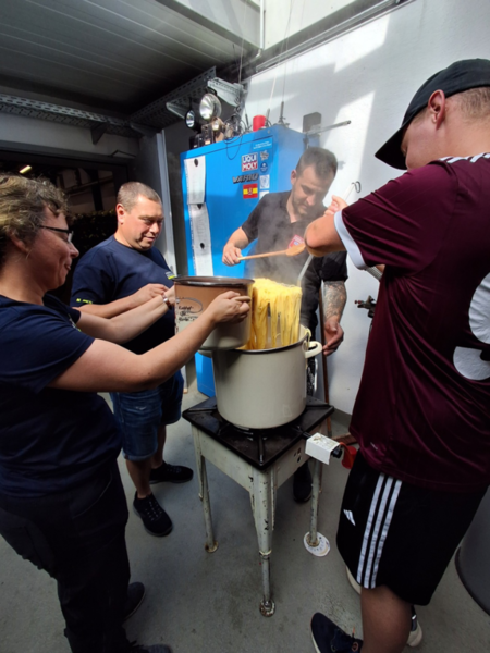 ein gemeinsames Mittagessen im Feuerwehrhaus.