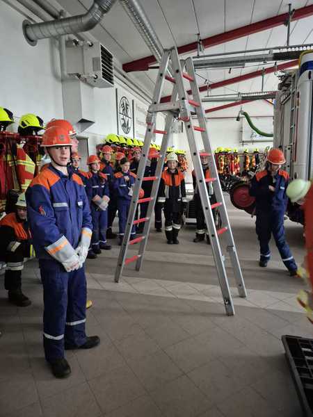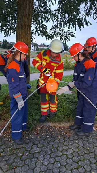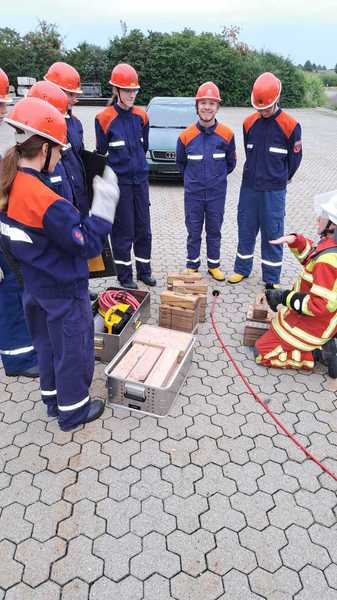 Dazu zählen z. B. Saugschlauchkuppeln, umgang mit Strahlrohren und Schläuchen, das Binden von Knoten, erste Hilfe, der richtige Umgang mit Leitern, Teambilding und vieles mehr.