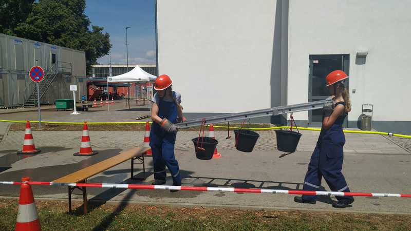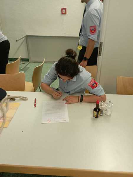 Dieses Jahr galt es einen Wassertransport, verschiedene Knoten, Theoriefragen zur Gefahrenmatrix und eine Verkehrsabsicherung zu meistern.